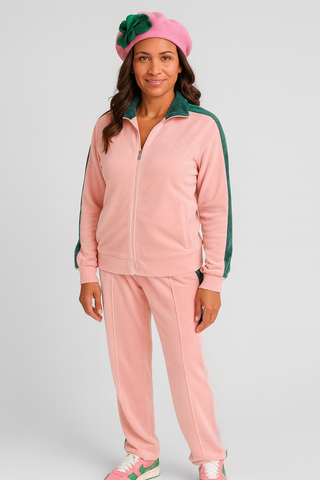 The zip-front jacket and relaxed-fit pants offer a smooth, flattering silhouette, while embroidered detailing and premium construction give it that unmistakable Alwaze touch. Perfect for chapter events, travel days or effortless everyday style.