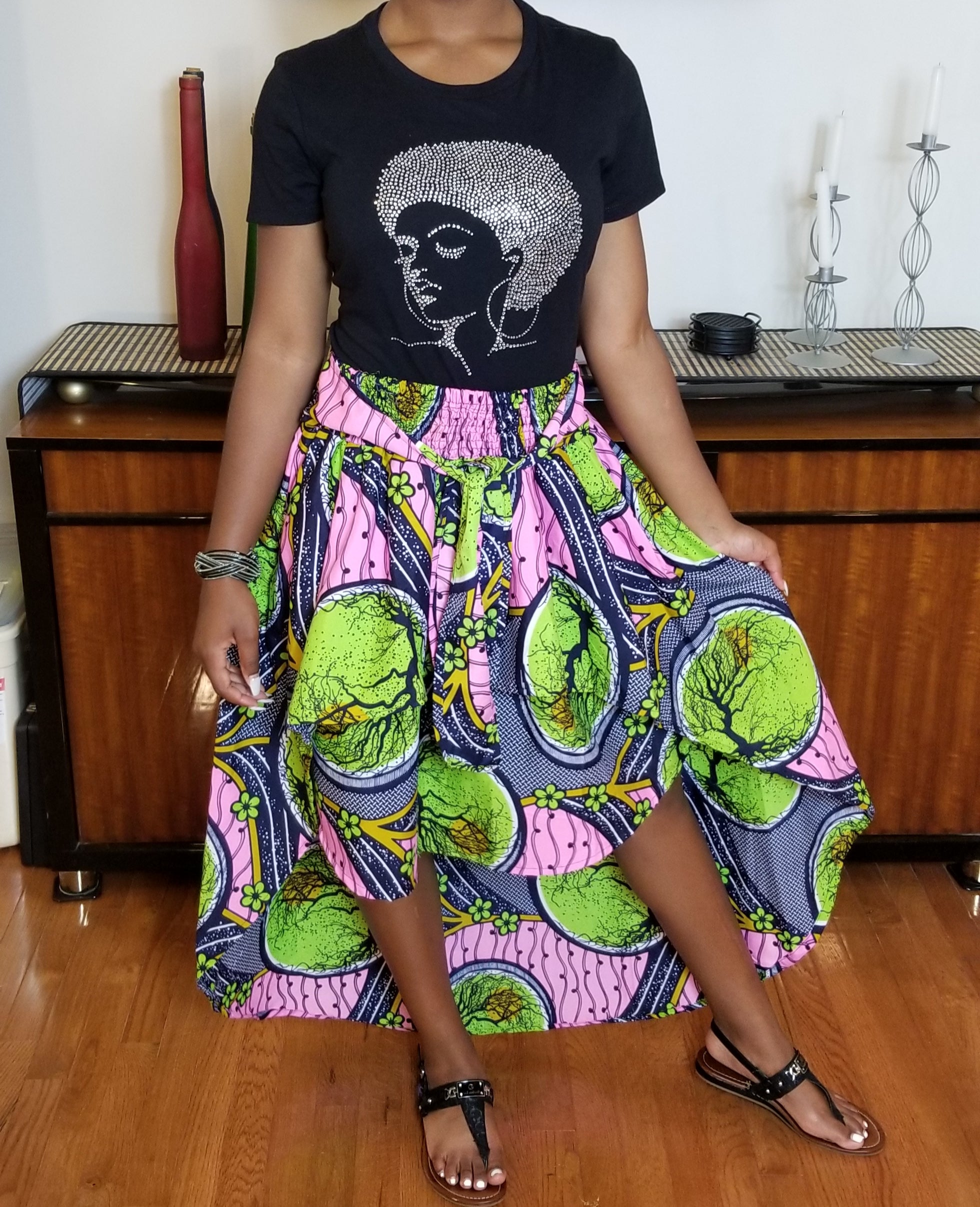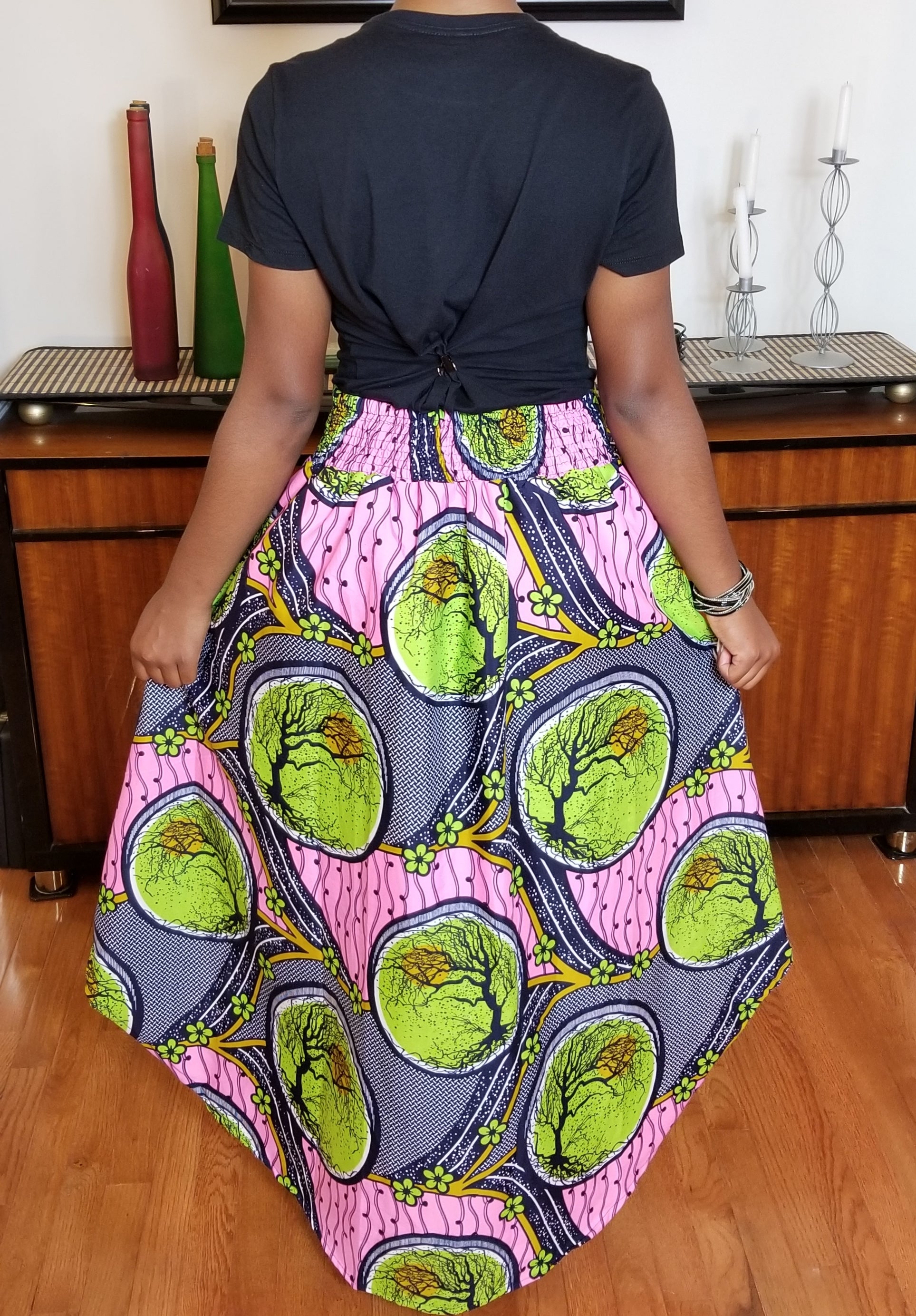 Pink & Green High Low Skirt