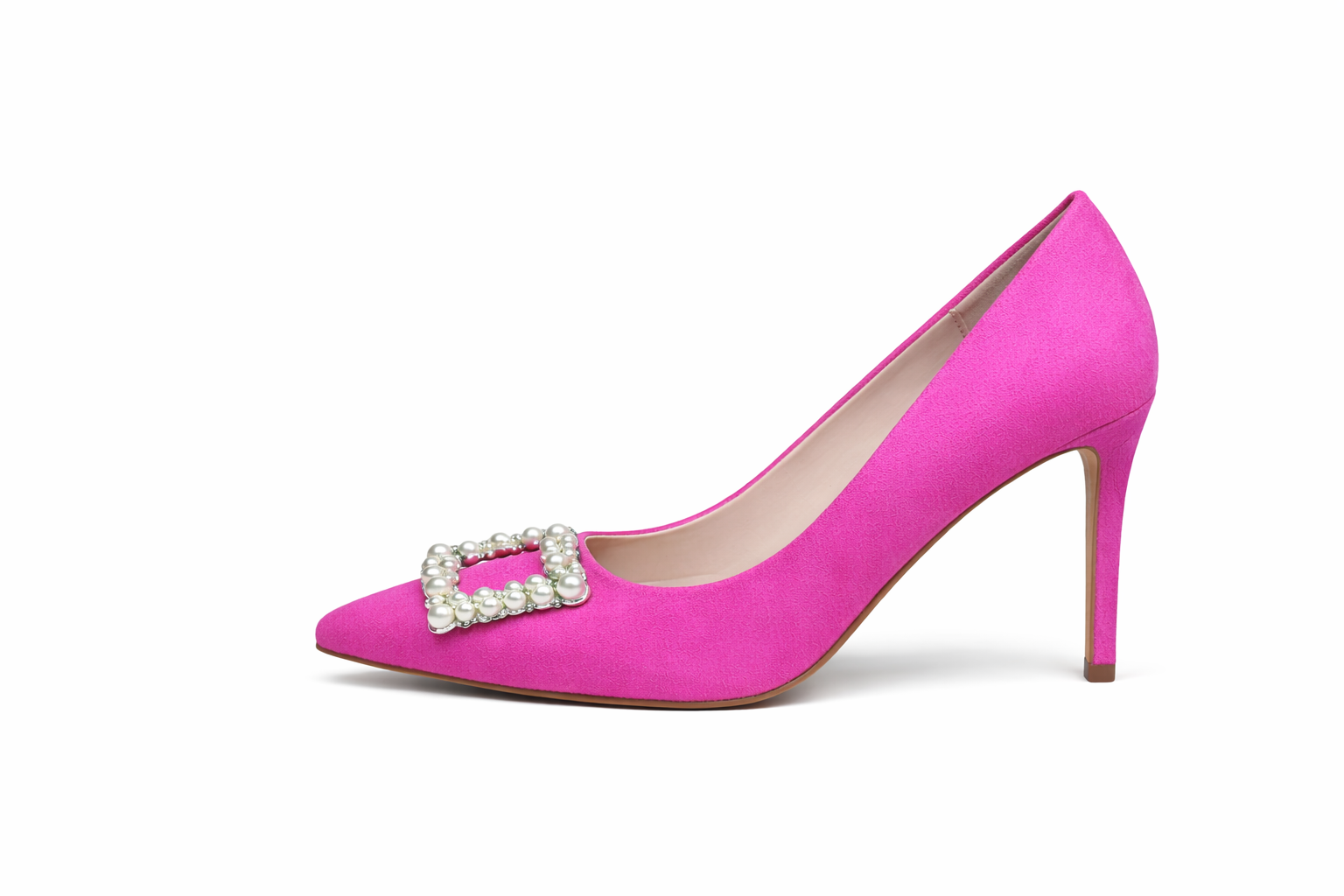 • Elegant with a statement finish, the Suede Pearl Toe Heels are designed to turn heads. Crafted in a soft suede material, these pointed-toe heels feature a stunning pearl-embellished square detail that adds a touch of luxury and sophistication. The sleek stiletto heel creates a polished silhouette, making them perfect for meetings, special occasions, or stepping out in refined style.