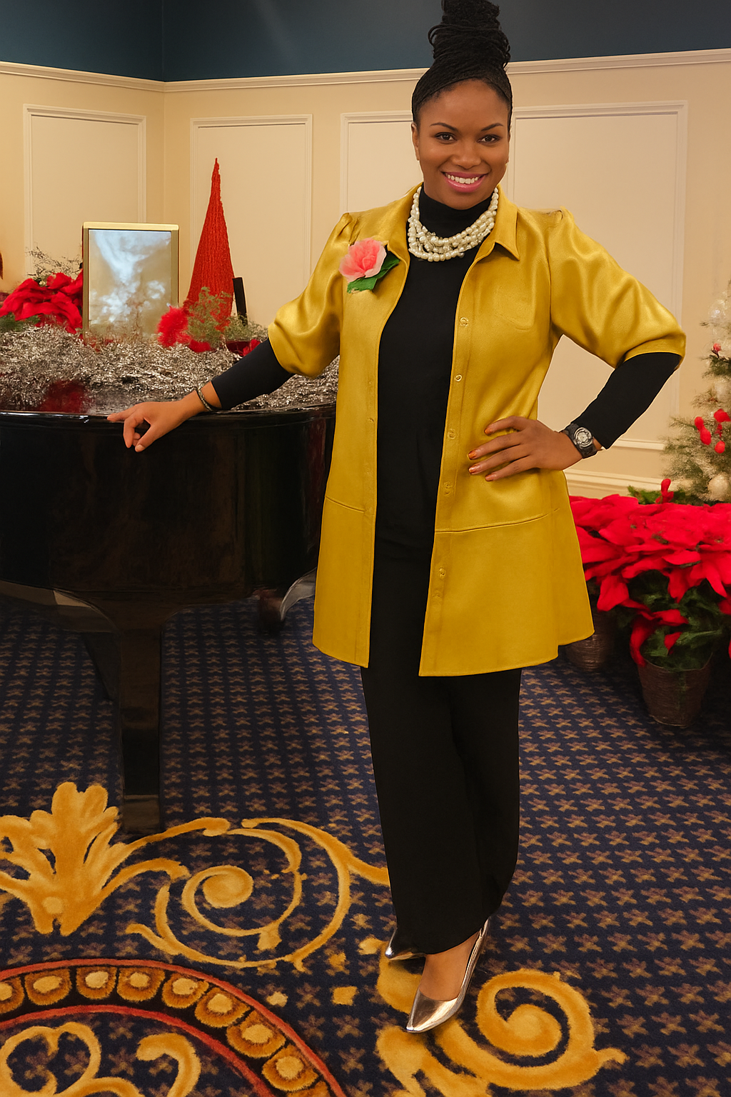 This versatile piece works for events, brunch, appearances, or layered looks. Dress it up with heels or wear it open over jeans. However you style it, it brings instant presence.